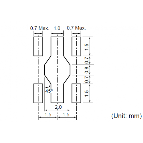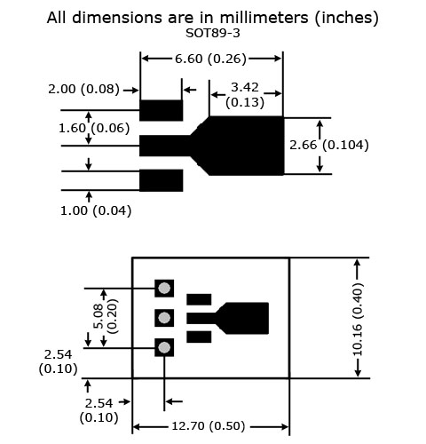 SOT89 with chamfered Pin 2 on one end and rectangle on the other end: