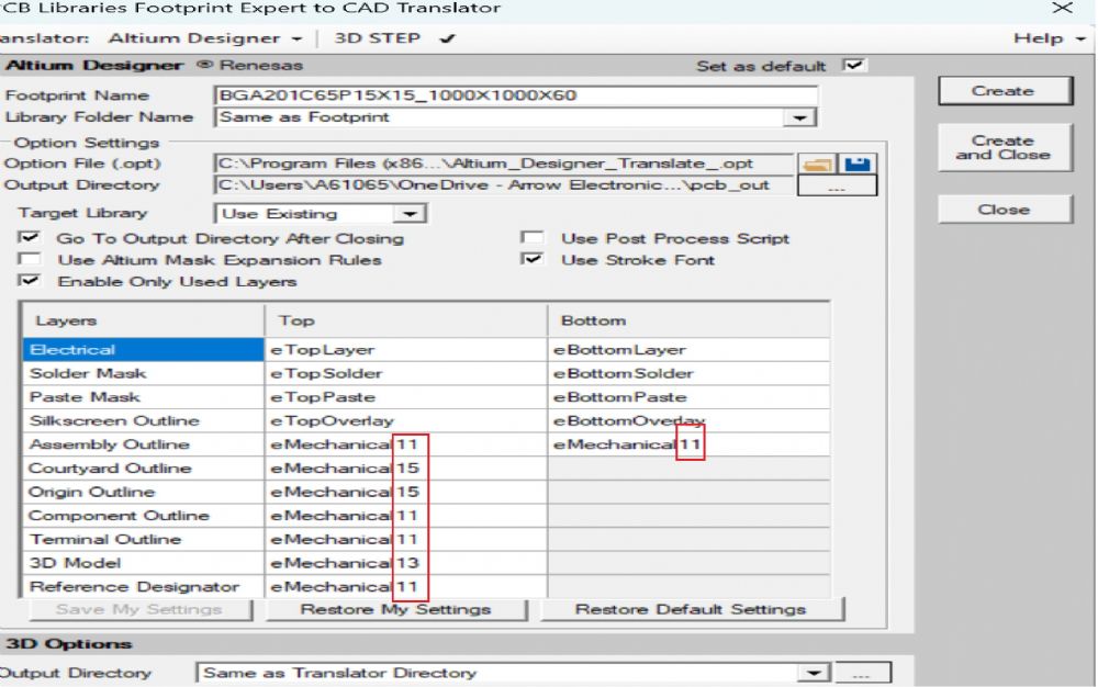 These are the Default Layers in Footprint Expert. Here is the Altium documentation information to their Style Guide: In your screenshot, you are assigning Mechanical Layer 11 to the Assembly Outline Top and Bottom. This is not recommended that you use the same layer for both Top and Bottom. You are also assigning Component Outline, Terminal Outline and Reference Designator to Mechanical Layer 11. Never seen this before and we don't know any professional Altium user who directs all these elements to the same Mechanical Layer 11. We highly recommended that you use the Altium Default Layer Recommendations. |