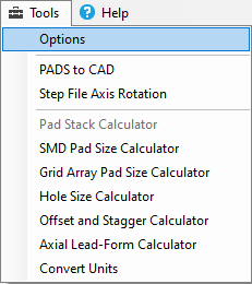 The Console Options are intended for each individual user, unlike the Calculator Options that should be used by everyone in the company to create a corporate PCB Library with 100% consistent quality. The Calculator Options .opt file could be placed on a server and all Footprint Expert users load that custom file. The Console Options are normally saved in the installation folder for each unique user.