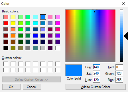 by selecting the color and open the Basic Colors dialog window.