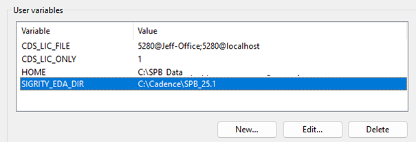 Check your User Variables for SIGRITY_EDA_DIR.