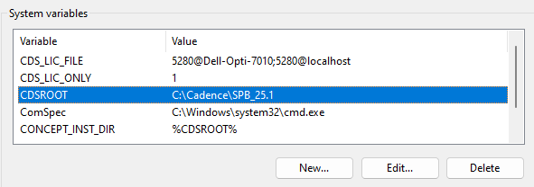 NOTE: Alternate values may depend on your installed version and PC/operating system version. You may require different values. You can tell what values you need by paying particular attention to the format and spelling of the values. Confirm each drive/directory exists by navigating in Windows File Explorer in the previously specified CDSROOT directory (see above). If any of the directories are different, modify the respective value accordingly.