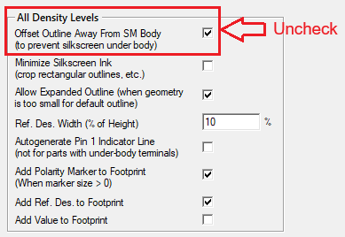 However, some assembly shops with a higher level of component package movement during reflow, will use the Offset Margin Option to move the silkscreen further away from the package body.
