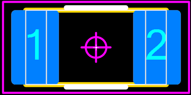 This is an example of a 1206 Chip Resistor package. Dimensions: H = 1.40, D = 3.20 ±0.20, E = 1.60 ±0.20, L = 0.50 ±0.25 The IPC-7352 mathematical model includes the D, E and L dimensions and tolerances and the solder joint goal settings for Toe = 0.35, Heel = 0.00, Side = 0.00 Resulting pad size rounded to 2 places is – L 1.15 x W 1.80 x G 1.80 The resulting pad stack pattern must have the terminal leads on the pad stack in these conditions: The Nominal Material condition of the component package & Nominal Terminal.