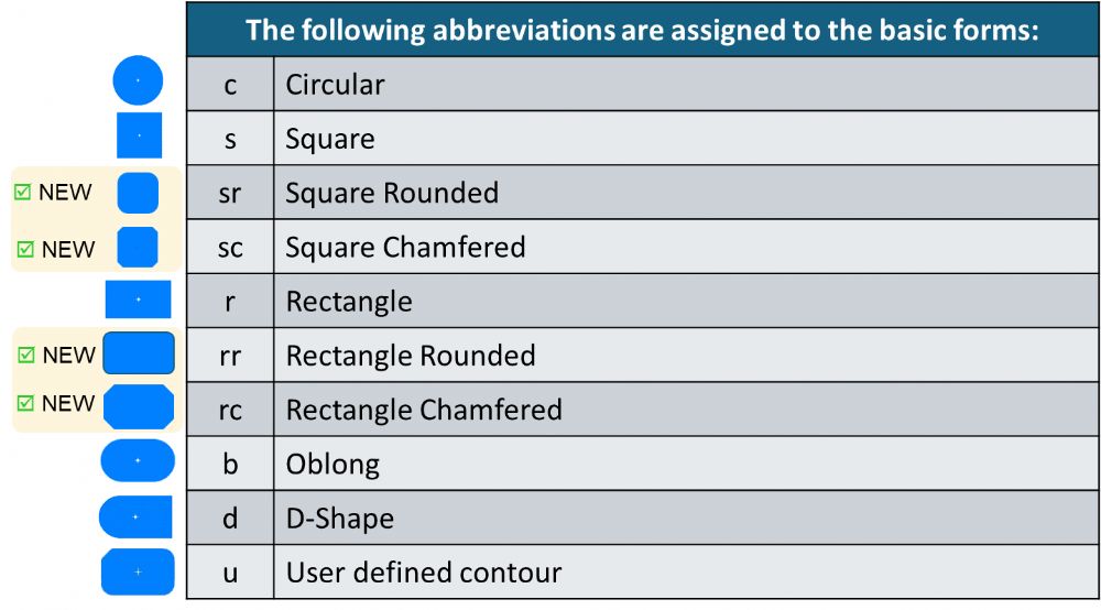 The first letter in the pad stack name describes the shape of the pad on the outer layers of the circuit board. Small letters are used. Note: “b” = Oblongs, because the letter “o” could easily be confused with the number “0”.