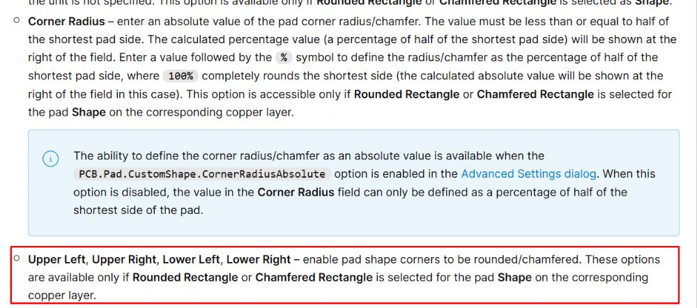 I was working in this SOD-523 diode, onsemi part number RB751S40T1G . Suddenly, I had a doubt with a value because the length of the pin is 0.30mm REF, I was thinking to use +/-0.05mm of tolerance but I said to my self: "how PCBFE resolve this question? and I've gone to the Parts area and bingo! it is ready to download. After downloading I opened it and It was not similar to a SOD-523, it seems more a DFN component. ![]() Could we consider this kind of components a DFN and why? My first impression has been: the footprint is no correct but then... and why not? I attached the downloaded file as well. My component was more "traditional" ![]() I attached as well my component fpx Anyway I am not very happy with my footprint and as now we have a new feature where we can modify the corners of a footprint when the pad is rounded rectangle or chamfered pad. ![]() Using this feature I created the inner corners of the component squared and outer corners rounded. the inner corners are under the component and perhaps are more close to s DFN... What's your opinion? ![]() Thanks for your comments, they are always really appreciated. Regards, David