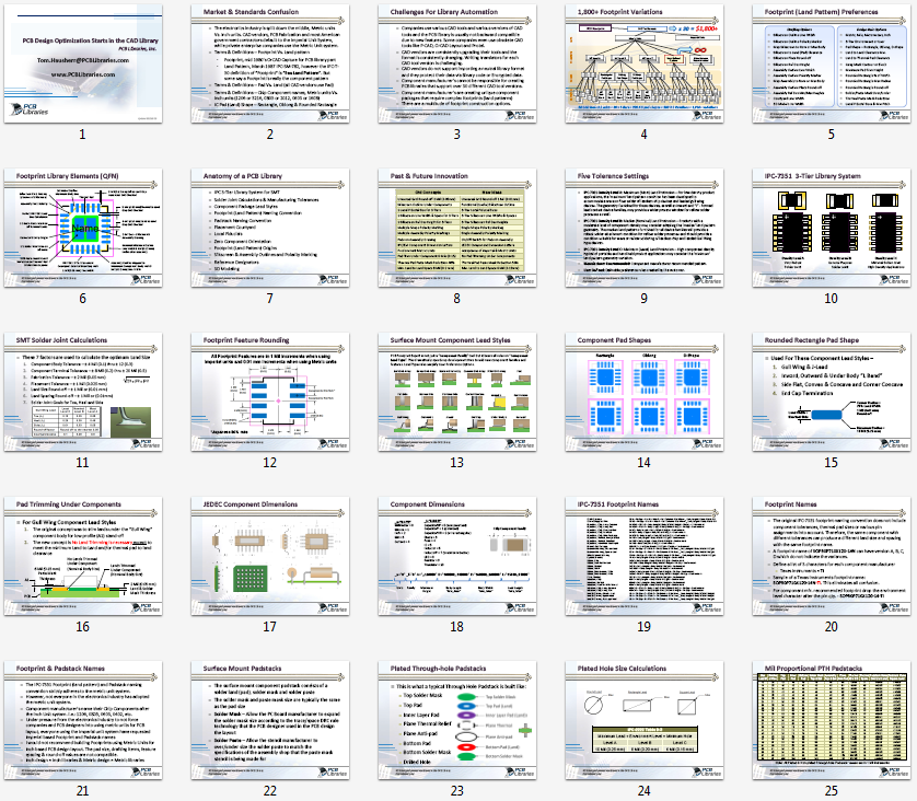 The following document represents every Surface Mount component family in the PCB Library Expert with graphic illustrations of every 3D STEP model, example Footprint with Silkscreen and updated Solder Joint Goal Tables: