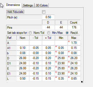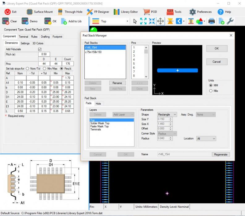 Calculator QFP Pad Stack Invalid Number