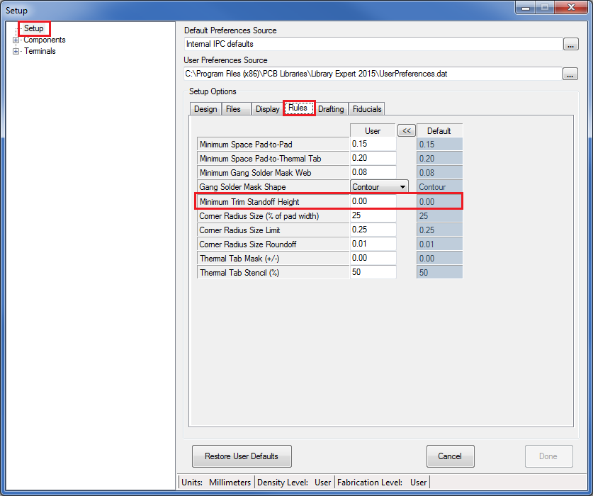 Library Expert has way more features than LP Wizard but everything is User Definable in Preferences. You decide what the minimum A1 value is for your assembly process.