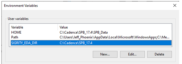 These Path linkages allow your system to know where 'padstack_editor' is when issued as a command to convert the SCR files to DRA and PSM. The first sets up a variable to refer to the Cadence Design System Root (CDSROOT) directory, and the second uses that to put various directories in the Path. Both the Padstack Editor and Allegro itself should be found in the tools\bin directory.
