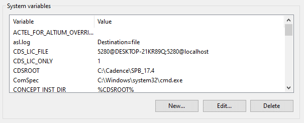 NOTE: Alternate values may depend on your installed version and PC/operating system version. You may require different values. You can tell what values you need by paying particular attention to the format and spelling of the values. Confirm each drive/directory exists by navigating in Windows File Explorer in the previously specified CDSROOT directory (see above). If any of the directories are different, modify the respective value accordingly.