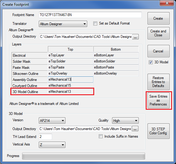 Is there a way (inside Lib Expert Pro) to change the default output layer that the step model is going to?  Altium's default and thus a lot of Altium designers is "Mechanical 1" not "Mechanical 13".