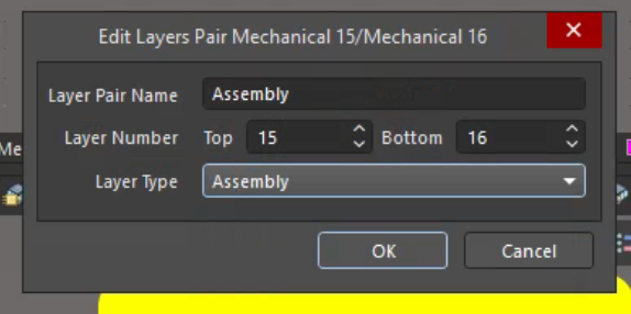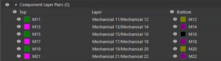 at the moment i am modifying the *.pas file from the export to add the component layer: LayerPairs.AddPair(ILayer.MechanicalLayer(17),ILayer.MechanicalLayer(18)); LayerPairs.AddPair(ILayer.MechanicalLayer(19),ILayer.MechanicalLayer(20)); LayerPairs.AddPair(ILayer.MechanicalLayer(21),ILayer.MechanicalLayer(22)); LayerPairs.AddPair(eMechanical11,eMechanical12); LayerPairs.AddPair(eMechanical13,eMechanical14); LayerPairs.AddPair(eMechanical15,eMechanical16); In Altium it looks like this: ![]() And in the edit: ![]() How can i modify my code so it will just do the correct assignment: ![]() Thanks, Marian |
