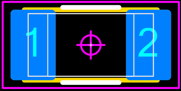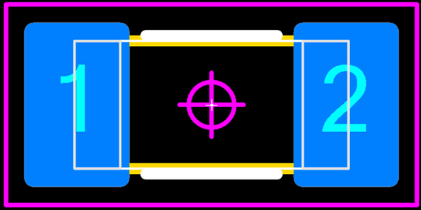 This is an example of a 1206 Chip Resistor package. Dimensions: H = 1.40, D = 3.20 ±0.20, E = 1.60 ±0.20, L = 0.50 ±0.25 The IPC-7352 mathematical model includes the D, E and L dimensions and tolerances and the solder joint goal settings for Toe = 0.35, Heel = 0.00, Side = 0.00 Resulting pad size rounded to 2 places is – L 1.15 x W 1.80 x G 1.80 The resulting pad stack pattern must have the terminal leads on the pad stack in these conditions: The Nominal Material condition of the component package & Nominal Terminal.