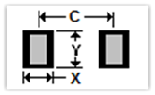 = Smax (RMS) -(2 * Jh) - Ht Gmin = 2.61 - (2 * 0) – 0.82 = 1.79 Pad Size X = (Zmax – Gmin) / 2 Pad Size X = (4.10 – 1.79) / 2 = 1.15 Pad Center-to-Center C = Zmax - Pad Size X Pad Center-to-Center C = 4.10 – 1.15 = 2.94