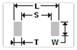 Example for a 1206 Chip Lmax = 3.40, Lmin = 3.00, Ltol = length tolerance = Lmax – Lmin = 0.40 Tmax = 0.75, Tmin = 0.25, Ttol = terminal tolerance = Tmax – Tmin = 0.50 Wmax = 1.80, Wmin = 1.40, Wtol = width tolerance = Wmax – Wmin = 0.40 Smax = Lmax – (2 * Tmin) = 3.40 – (2 * 0.25) = 2.90 Smin = Lmin – (2 * Tmax) = 3.00 – (2 * 0.75) = 1.50 Stol (worst case) = Smax – Smin = 2.9 – 1.5 = 1.40 The worst-case difference between ‘Smin’ and ‘Smax’, 1.40, is statistically improbable since a simutaneous combination of extreme material conditions is considered beyond the actual range within which components are manufactured. To arrive at a more realistic tolerance range, the RMS (Root Mean Square) value is calculated using the tolerances on the dimensions involved. In this case ‘L’ and ‘T’. Stol (RMS) = RMS tolerance accumulation = √((Ltol ^2) + (2 * (Ttol ^2)) Stol