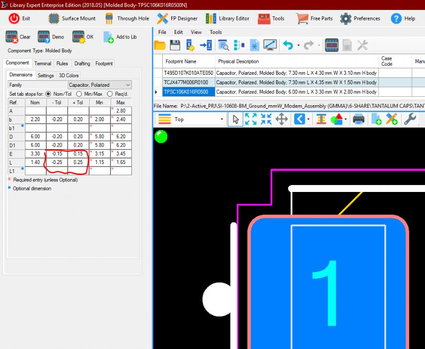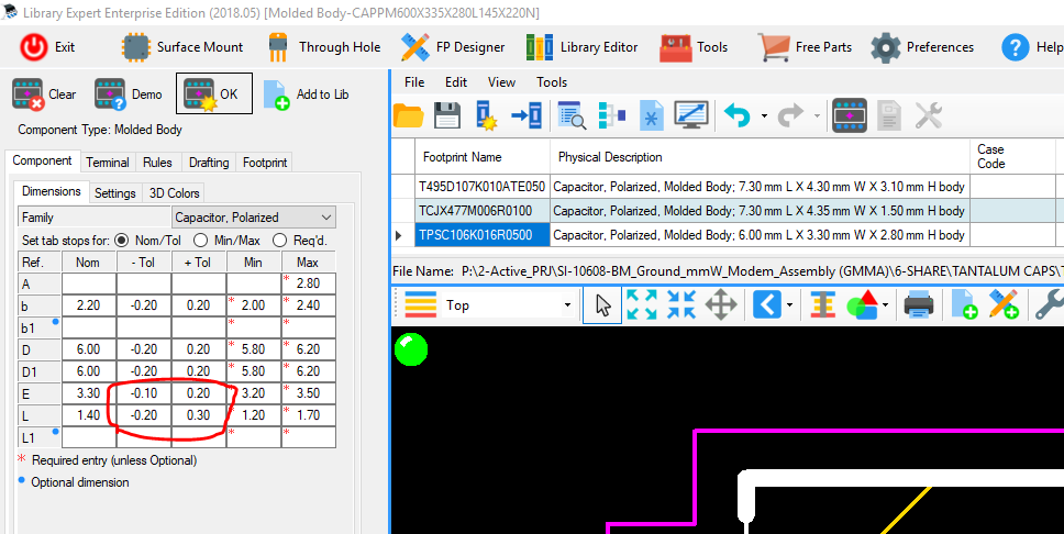 When you get a datasheet that has different + & - tolerances, do not enter the Nominal + tolerances, enter the Minimum & Maximum dimensions.