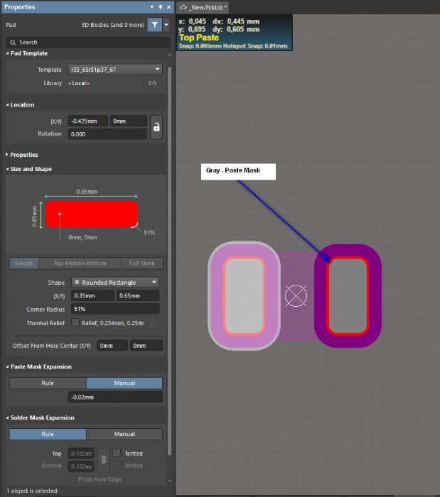Pastе Mask in Altium Designer v19.0.14 (after run script generated by Library Expert):