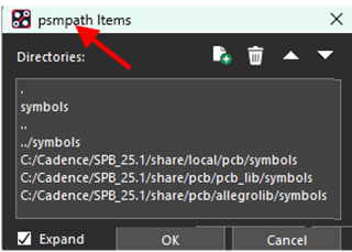 Select "OK" when complete. Repeat for the psmpath. This sets the current directory as a searchable path for proper linkage when running the main script created by Footprint Expert.