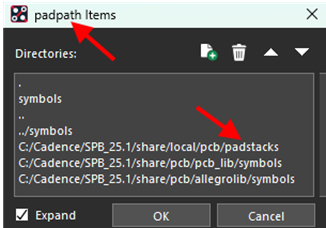 - Pad stack created and no pad in symbol: verify padpath is pointing to the directory that FPX is running, as shown in Section 1.