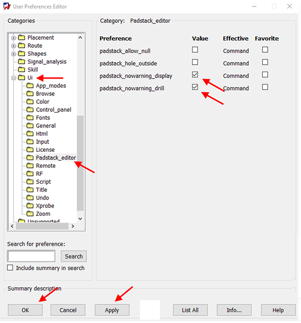 NOTE: Non-plated pad stacks will always have a pad smaller than the drill. With this checked, those warnings will be automatically bypassed. If you do not do this, you will need to save the pad stack with warnings. A process which must follow Section 3 exactly.