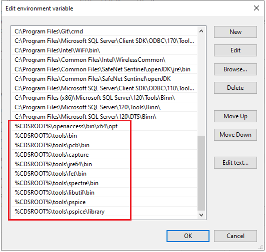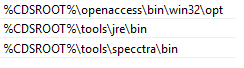 NOTE: Alternate values may depend on your installed version and PC/operating system version. You may require different values. You can tell what values you need by paying particular attention to the format and spelling of the values. Confirm each drive/directory exists by navigating in Windows File Explorer in the previously specified CDSROOT directory (see above). If any of the directories are different, modify the respective value accordingly.