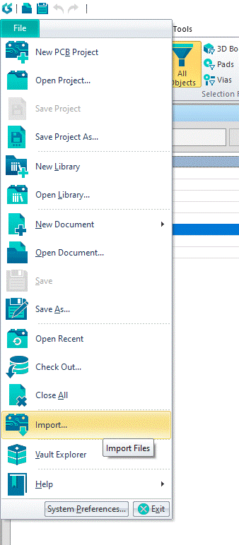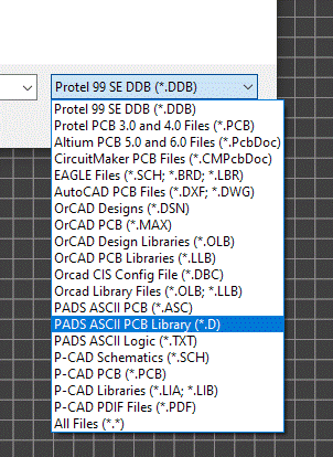 corner of the file dialog to PADS files.